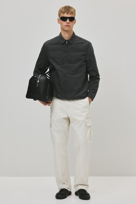 Washed Cotton Canvas Jacket With Concealed Zip And Worn Details